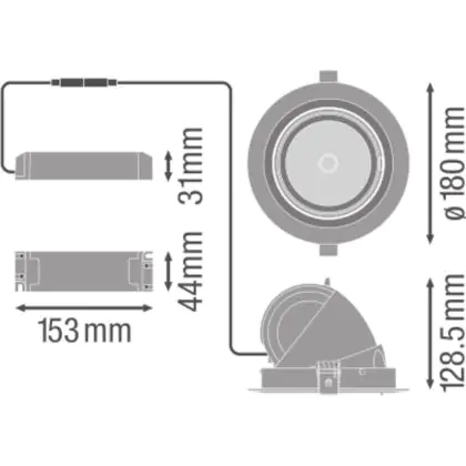 Descrizione Ledvance Faretti LED Vario Inclinabile 35W 3350lm 24D - 830 Luce Calda - | Ritaglio 170mm