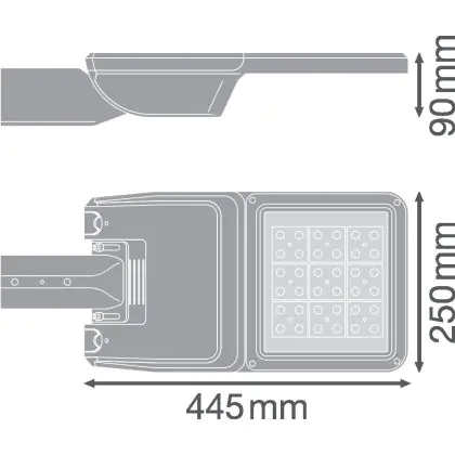 Descrizione Ledvance Illuminazione stradale LED Flex Grande RV25ST Grigio 36W 5180lm 25x145D - 740 Bianco Freddo | IP66 – Asimmetrico