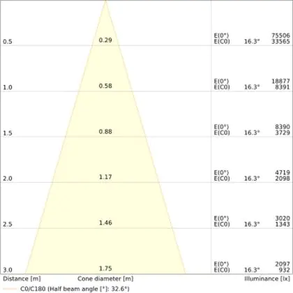 L'apertura del fascio luminoso indica l'angolo del fascio di luce proveniente da una lampada o lampadina. Si misura in gradi (D) e più piccolo è l'angolo, più piccola è l'apertura del fascio di luce.
