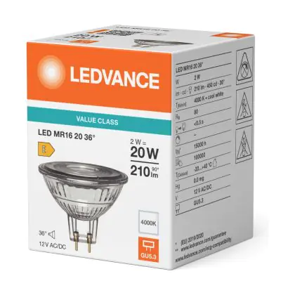 Descrizione Ledvance LED MR16 P LED Riflettore GU5.3 PAR16 2W 210lm 36d - 830 Luce Calda - | Sostitutiva 20w