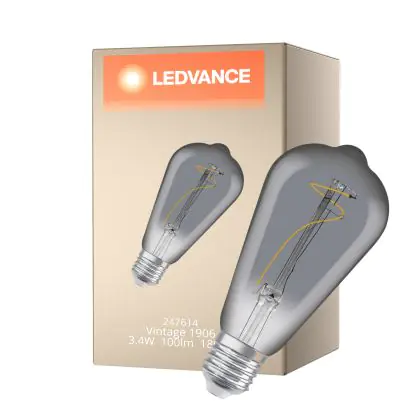 La Ledvance LED Vintage 1906 E27 Edison Filamento Smokey 3.4W 100lm - 818 Bianco Molto Caldo è la perfetta sostituzione per la tua lampada convenzionale 10W con attacco E27 grazie alla sua tecnologia LED. Passare a LED ti offrirà tanti vantaggi!