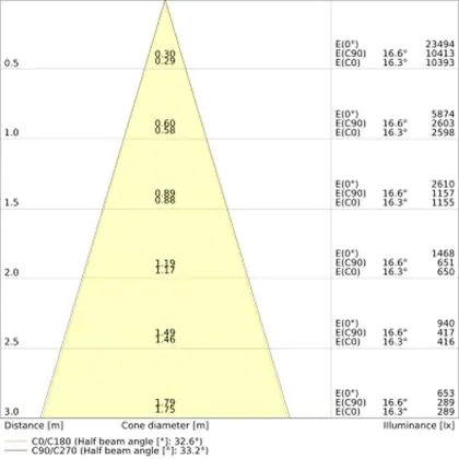 L'apertura del fascio luminoso indica l'angolo del fascio di luce proveniente da una lampada o lampadina. Si misura in gradi (D) e più piccolo è l'angolo, più piccola è l'apertura del fascio di luce.