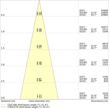 L'apertura del fascio luminoso indica l'angolo del fascio di luce proveniente da una lampada o lampadina. Si misura in gradi (D) e più piccolo è l'angolo, più piccola è l'apertura del fascio di luce.