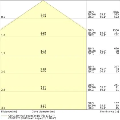 ![]() Il codice colore è una combinazione di resa cromatica (CRI) e colore della luce (Kelvin). La prima cifra indica la resa cromatica (1 = resa del colore molto bassa, 9 = massima resa del colore), mentre la seconda e la terza si riferiscono al colore della luce. Esempio: il codice colore 830 indica una buona resa cromatica (8) e luce bianca calda (3000K). |