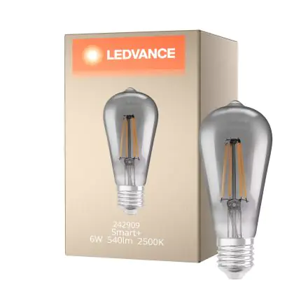 La Ledvance Smart+ Wifi E27 Edison Classic Filamento Vetro smoky 6W 540lm - 825 Bianco Molto Caldo | Dimmerabile - Sostitutiva 50W è la perfetta sostituzione per la tua lampada convenzionale 44W con attacco E27 grazie alla sua tecnologia LED. Passare a LED ti offrirà tanti vantaggi!