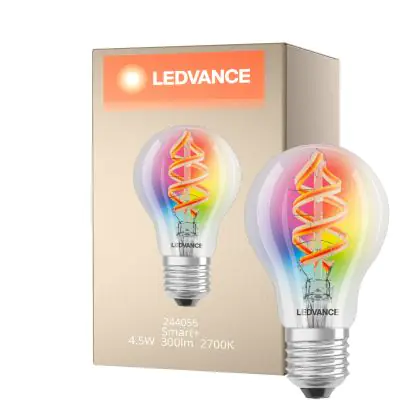Descrizione Ledvance Smart+ Wifi E27 Pera Classic Filamento 4.5W 300lm - 827 Bianco Molto Caldo | RGBW - Sostitutiva 30W