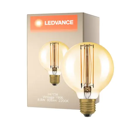 La Ledvance Vintage 1906 LED E27 Globe Oro 8.8W 806lm - 822 Bianco Molto Caldo | Dimmerabile - Sostitua 60W è la perfetta sostituzione per la tua lampada convenzionale 60W con attacco E27 grazie alla sua tecnologia LED. Passare a LED ti offrirà tanti vantaggi!