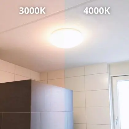 Per scegliere un apparecchio di illuminazione bisogna anche considerare dove verrà installato. Per esempio la luce di 2700 Kelvin (bianco molto caldo) e 3000 Kelvin (bianco caldo) creano un’atmosfera rilassante e piacevole. Questa tonalità è quindi molto adatta ad ambienti accoglienti o a zone generiche come corridoi, ascensori, disimpegni o pianerottoli. Una luce di 4000 Kelvin (bianco freddo), invece,è più luminosa e fresca ed è quindi adatta come illuminazione funzionale in uffici, aziende, scuole e biblioteche. La temperatura di colore di questa plafoniera LED è 3000K - Luce Calda.
