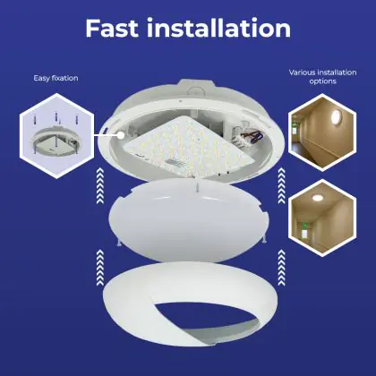 Prima di sostituire un vecchio apparecchio di illuminazione con uno nuovo è sempre consigliabile controllare le dimensioni. Installare questa plafoniera LED è molto facile: basta leggere attentamente le istruzioni e utilizzare il materiale di installazione fornito (viti, tasselli, ecc.). Se hai dubbi sull’installazione consulta un installatore certificato. Per questa lampada offriamo una garanzia di 6 anni.