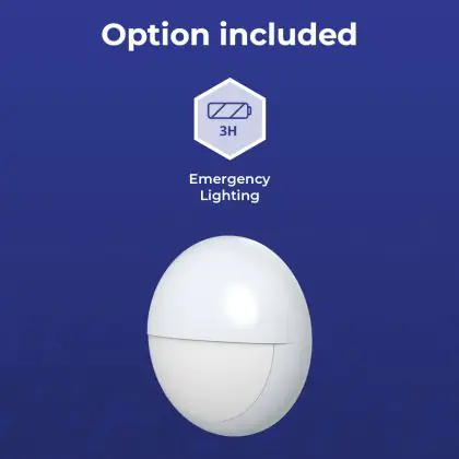 ![]() Gli apparecchi di illuminazione con una luce di emergenza incorporata continuano a emettere luce per un certo tempo anche quando salta la corrente. |