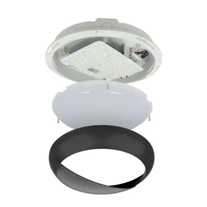 Descrizione Noxion Bulkhead LED Pro V2 12/16/20W 2400lm - 830-840-865 CCT | 325mm - IP65 - Emergenza 3H + Palpebra Il Anello Nero
