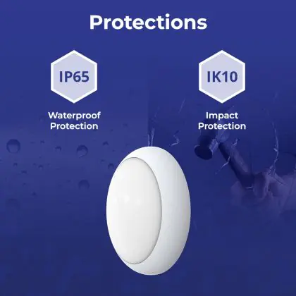 Un elemento importante delle plafoniere e delle applique LED è il loro livello di proezione IP, che indica la protezione contro l'ingresso di polvere e umidità/acqua. A partire da IP65, un apparecchio di illuminazione è a prova di polvere e acqua. Il valore IP di questa plafoniera LED è: IP65. Stai cercando una plafoniera LED per esterni? Allora presta attenzione alla protezione da urti e impatti, ovvero il valore IK, che per questa lampada è IK10 - 20 Joule.