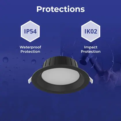Questo apparecchio può essere usato sia in spazi interni che in spazi esterni, poiché ha indice di protezione contro l'ingresso di acqua e polvere IP54. In generale, un apparecchio con IP44 è resistente a schizzi di acqua e umidità, e può quindi essere installato in spazi esterni molto umidi o esterni riparati, come sono una tettoia. Un apparecchio che invece verrà esposto a intensi getti di acqua deve avere almeno IP54. Questa lampada ha anche un indice di resistenza a urti e impatti di .