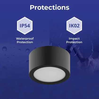 Questo apparecchio può essere usato sia in spazi interni che in spazi esterni, poiché ha indice di protezione contro l'ingresso di acqua e polvere IP54. In generale, un apparecchio con IP44 è resistente a schizzi di acqua e umidità, e può quindi essere installato in spazi esterni molto umidi o esterni riparati, come sono una tettoia. Un apparecchio che invece verrà esposto a intensi getti di acqua deve avere almeno IP54. Questa lampada ha anche un indice di resistenza a urti e impatti di .