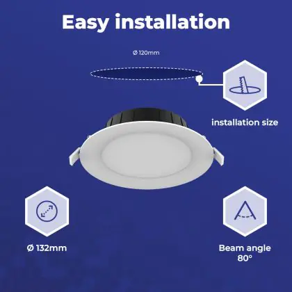 Descrizione Noxion Downlight LED Hera Piatto Incasso Bianca 9W 900lm 80D - 827-830-840 CCT | 132mm - Ritaglio 120mm