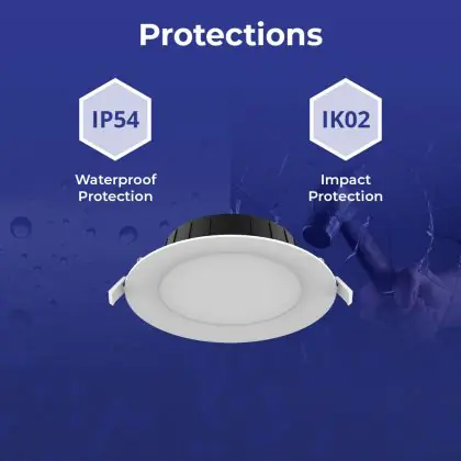 Questo apparecchio può essere usato sia in spazi interni che in spazi esterni, poiché ha indice di protezione contro l'ingresso di acqua e polvere IP54. In generale, un apparecchio con IP44 è resistente a schizzi di acqua e umidità, e può quindi essere installato in spazi esterni molto umidi o esterni riparati, come sono una tettoia. Un apparecchio che invece verrà esposto a intensi getti di acqua deve avere almeno IP54. Questa lampada ha anche un indice di resistenza a urti e impatti di
