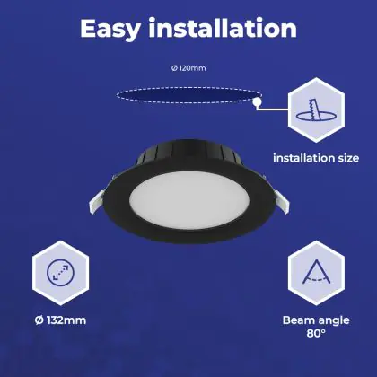 | Nome del fabbricante | Noxion LED Downlight Hera Flat Recessed Black 9W 900lm 80D - 827-830-840 CCT | 132mm - Cutout 120mm | |