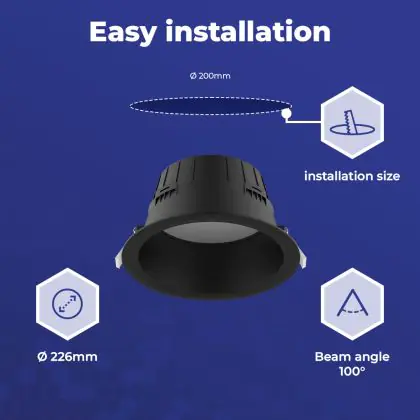 | Nome del fabbricante | Noxion LED Downlight Hera Deep Recessed Black 21W 2400lm - 827-840 CCT | 226mm - Cutout 200mm | |