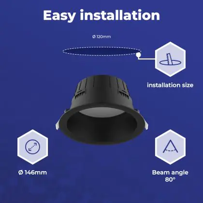 | Nome del fabbricante | Noxion LED Downlight Hera Deep Recessed Black 9W 900lm 80D - 827-830-840 CCT | 146mm - Cutout 120mm | |