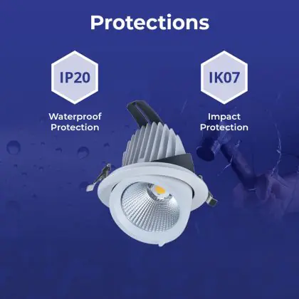 Dove sia meglio usare un apparecchio luminoso dipende dalle caratteristiche del prodotto stesso. Per esempio, un downlight LED che emette luce bianca calda (2.700K) è perfetto per il settore dell'ospitalità o nelle case. I downlight con luce bianca calda (3.000K) sono più adatti alle aree generali, come mense, sale d'attesa, sale di ricevimento o corridoi. Infine la luce bianca calda (4.000K) e bianca molto calda (6.500K) vanno bene per uffici, scuole, laboratori e ospedali. Questo apparecchio ha temperatura di colore di K. Altro fattore da considerare è la resa cromatica dell’apparecchio. Per gli ambienti in cui i colori giocano un ruolo importante, come in una galleria d'arte o in un negozio di abbigliamento, allora una resa dei colori di 90-99 Ra è più efficace dello standard 80-89 Ra. Questo downlight ha CRI di 90-99 - Perfetta resa cromatica Ra.