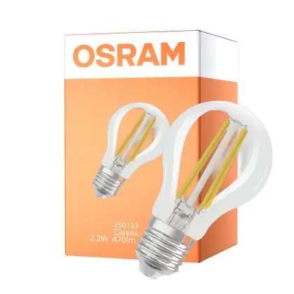 La Osram Classic LED E27 Pera Filamento Chiara 2.2W 470lm Ultra Efficiency - 840 Bianco Freddo | Sostitutiva 40W è la perfetta sostituzione per la tua lampada convenzionale 40W con attacco E27 grazie alla sua tecnologia LED. Passare a LED ti offrirà tanti vantaggi!