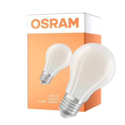 La Osram Classic LED E27 Pera Filamento Ghiaccio 3.8W 806lm - 840 Bianco Freddo | Dimmerabile - Sostitutiva 60W è la perfetta sostituzione per la tua lampada convenzionale 60W con attacco E27 grazie alla sua tecnologia LED. Passare a LED ti offrirà tanti vantaggi!