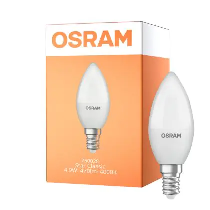 La lampada Osram LED Star Classic E14 Candela Ghiaccio 4.9W 470lm - 840 Bianco Freddo | Sostitutiva 40W è il sostituto perfetto per le tue vecchie lampade 40W con attacco a vite piccolo E14 grazie alla sua tecnologia LED. Passare a LED ti offrirà molti vantaggi!