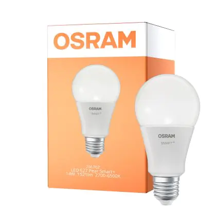 La Osram Smart+ Opacoer Classic LED E27 Pera Ghiaccio 14W 1521lm - 827-865 Regolabile Bianca | Dimmerabile - Sostitutiva 100W è la perfetta sostituzione per la tua lampada convenzionale 100W con attacco E27 grazie alla sua tecnologia LED. Passare a LED ti offrirà tanti vantaggi!