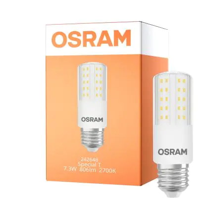 Descrizione Osram Special T Slim LED E27 Chiara 7.3W 806lm - 827 Bianco Molto Caldo | Dimmerabile - Sostitutiva 60W