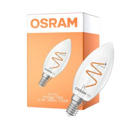 La lampada Osram Vintage 1906 LED Classic Slim E14 Candela Filamento Chiara 3.1W 300lm - 927 Bianco Molto Caldo | Miglior Resa Cromatica - Dimmerabile - Sostitutiva 25W è il sostituto perfetto per le tue vecchie lampade 25W con attacco a vite piccolo E14 grazie alla sua tecnologia LED. Passare a LED ti offrirà molti vantaggi!
