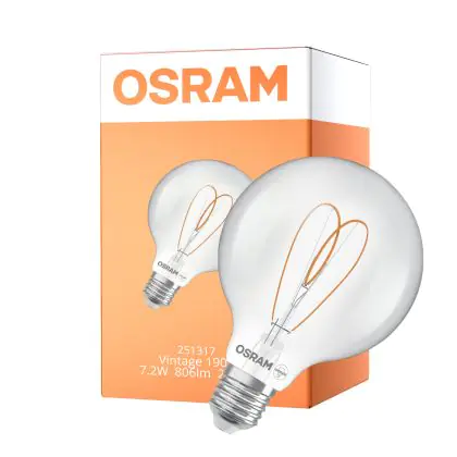 La Osram Vintage 1906 LED E27 Globe Filamento Chiara 7.2W 806lm - 927 Bianco Molto Caldo | Miglior Resa Cromatica - Dimmerabile - Sostitutiva 60W è la perfetta sostituzione per la tua lampada convenzionale 60W con attacco E27 grazie alla sua tecnologia LED. Passare a LED ti offrirà tanti vantaggi!