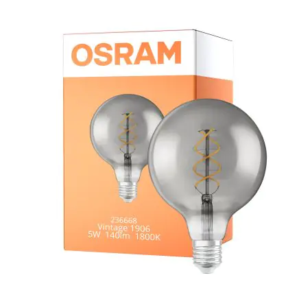 Descrizione Osram Vintage 1906 LED E27 Globe Filamento Smoke 125mm 5W 140lm - 818 Bianco Molto Caldo | Sostitutiva 15W