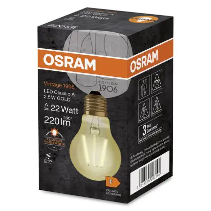 A differenza delle vecchie sorgenti luminose, questa soluzione presenta un consumo di soli 2.5 Watt al massimo delle prestazioni luminose. Inoltre, questa lampadina LED Osram Vintage 1906 offre un’accensione immediata fino al 100% della luminosità, senza inutili attese.