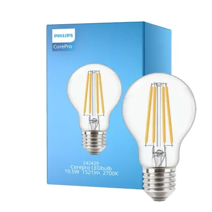 Descrizione Philips Corepro LED Bulbo E27 Pera Chiara 10.5W 1521lm - 827 Bianco Molto Caldo | Sostitutiva 100W