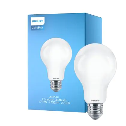 La Philips Corepro LED Bulbo E27 Pera Ghiaccio 17.5W 2452lm - 827 Bianco Molto Caldo | Sostitutiva 150W è la perfetta sostituzione per la tua lampada convenzionale 150W con attacco E27 grazie alla sua tecnologia LED. Passare a LED ti offrirà tanti vantaggi!