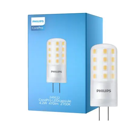 La Philips Corepro LED Capsule GY6.35 4.2W 470lm - 827 Bianco Molto Caldo | Sostitutiva 40W è perfetta per la sostituzione della convenzionale Lampada alogena 40W GY6.35 con colore della luce 827 Bianco Molto Caldo. Questa lampada ha una forma Capsula e va alimentata con 12 Volt. Passare a led ha molti vantaggi!