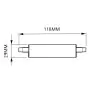 Questa lampadina a terminazione doppia lunga 118mm sostituisce le lampade alogene da 100W con un consumo di soli 14W a parità di resa luminosa.