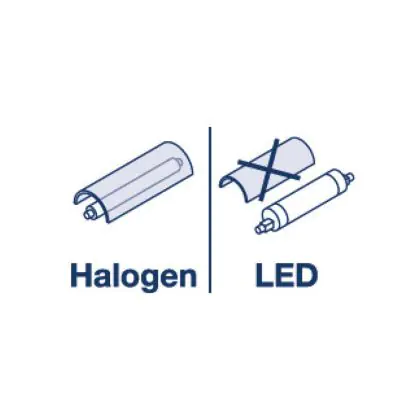 Questa lampadina a terminazione doppia lunga 118mm sostituisce le lampade alogene da 120W con un consumo di soli 14W a parità di resa luminosa.