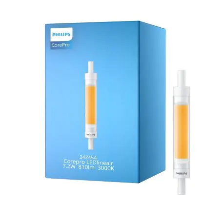 La Philips Corepro LED Lineair R7s 118mm 7.2W 810lm - 830 Luce Calda | Sostitutiva 60W è perfetta per la sostituzione della convenzionale Lampada alogena 60W R7s con colore della luce 830 Luce Calda. Questa lampada ha una forma A doppio attacco e va alimentata con 220-240 Volt. Passare a led ha molti vantaggi!
