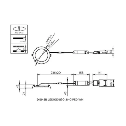 Descrizione Philips Downlight LED CoreLine Aluminium Bianca 10W 1150lm 180D - 830-840 CCT | 170mm - Ritaglio 155mm - IP44 - Dali Dimmerabile