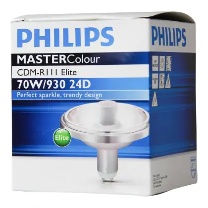 Le Philips CDM-R111 Elite70W 930 GX8.5 24D (MASTERColour) sono lampade a scarica compatte note per la qualità della luce emessa (una luce bianca brillante). Queste lampade a scarica, in confronto alle lampade Philips CDM-R111, presentano una migliore resa dei colori e una più lunga durata. Queste lampade hanno una potenza pari a 70W e presentano un attacco del tipo GX8.5. Presentano una vita media pari a 12.000 ore. L'indice di resa cromatica di tali lampade a scarica compatte si assesta nell'intervallo di 90-100Ra: questo indica che i colori e le caratteristiche degli oggetti illuminati vengono esaltati incredibilmente.