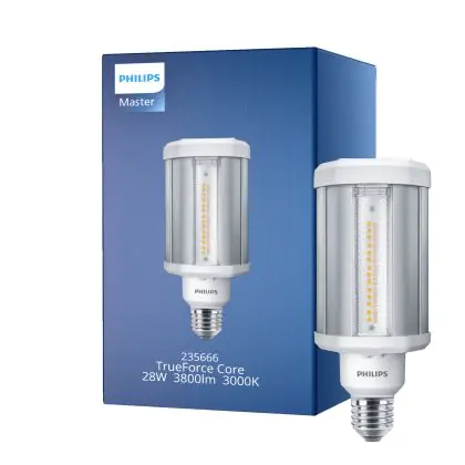 Descrizione Philips TrueForce LED E27 HPL Chiara 28W 3800lm 360D - 830 Luce Calda | Sostitutiva 125W