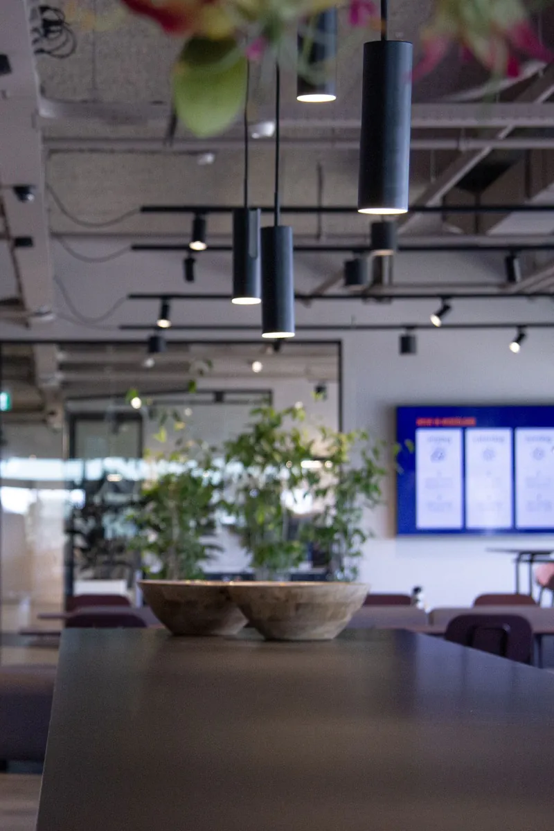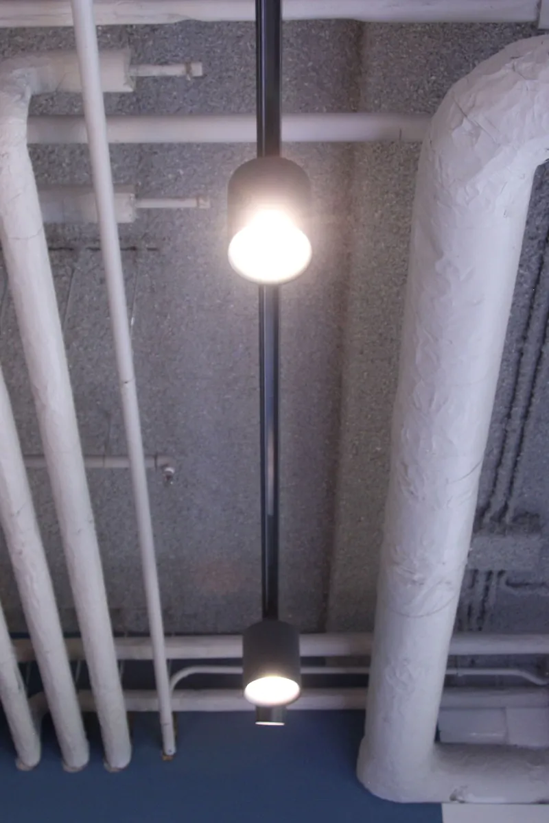 Per creare la giusta atmosfera con la luce abbiamo scelto apparecchi di Noxion e Nordlux, ma abbiamo anche deciso di far realizzare apparecchi su misura per il cliente. Creare un'atmosfera piacevole in ufficio, che contribuisca a far sì che i dipendenti si trovino bene in ufficio e li incoraggi ad andarci il più possibile. L'ufficio doveva anche avere un aspetto lussuoso, cosa che abbiamo cercato di trasmettere con i complementi d'arredo.